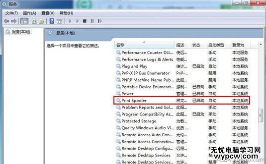 6、打開服務窗口后,我們在列表中找到并雙擊“Print Spooler”項,如下圖所示: