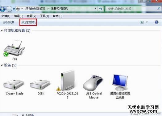 3、接著在設備和打印機頁面點擊“添加打印機”,如下圖所示: