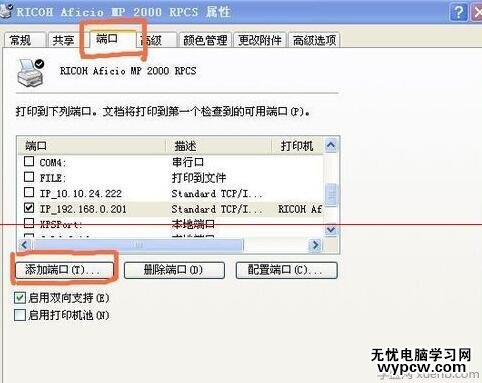 2、在屬性里選擇端口,再選擇“添加端口”如下圖