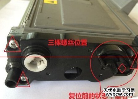 5、加完新粉后,來復(fù)位計數(shù)器。先拆掉三棵螺絲,并整塊取下
