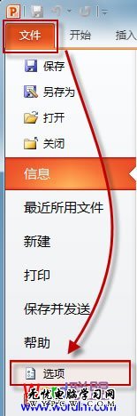 ②在打開“選項”對話框中切換到“保存”標簽中,選中“嵌入TrueType字體”選項,確定返回。
