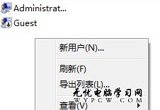 4、創建賬戶,只用在面板空白處單擊右鍵就行了,就可以看到創建一個新用戶!如圖所示: