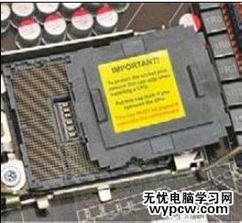 步驟2:打開金屬頂蓋后會看到CPU插座的塑料保護蓋(部分主板無此保護蓋)。塑料保護蓋上有兩個小小的突出開口,用指甲插入即可撬起保護蓋,如圖2所示。