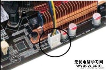 步驟7:在安裝之前,首先要確定散熱器的4pin電源接口在主板上的位置,保證散熱器安裝后電源線長度足夠連接到這個接口,如圖6右圖所示。