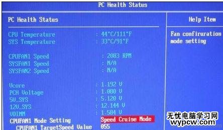 在主板和CPU風(fēng)扇都具備自動(dòng)調(diào)速的情況下,接下來(lái)我們要進(jìn)入主板Coms中進(jìn)行相關(guān)的設(shè)置,在PC Health Status單元里面有一個(gè)CPUFAN1 Mode Setting選項(xiàng),這個(gè)選項(xiàng)就是控制CPU風(fēng)扇用的,分別有三個(gè)模式Thermal Cruise Mode(按溫度調(diào)節(jié))、Speed Cruise Mode(按轉(zhuǎn)速調(diào)節(jié))、Smart FAN III+ Mode(智能模式)。