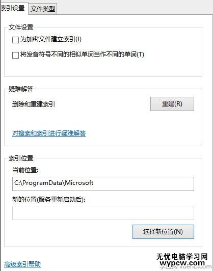 或是先建立索引之后再關(guān)閉索引服務(wù)。方法:鼠標右擊左下角——文件資源管理器——點擊搜索框——搜索——高級選項——更改索引位置——高級——選擇新位置——確定即可