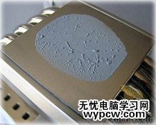 首先在CPU背面正中間,滴上適當量的硅脂,這個量不好說,要自己把握好,多了就刮點下去