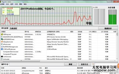 然后這個是我最近得到的軟件。(process lasso),紅綠燈式的,可以很好的管理你的后臺程序,并且合理控制,讓你正在運行的軟件達到最流暢的狀況。