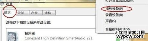1、右擊任務欄中,“喇叭”圖標,選擇“播放器設備”;