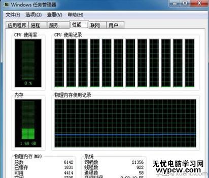 切換任務欄至”性能“以查看CPU的使用率,圖一為雙核心四線程i5的待機CPU使用率,圖二為六核心十二線程i7CPU;