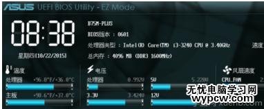 在主頁面,我們可以看到當(dāng)機(jī)主板基本的狀態(tài),如時間、CPU與主板的溫度、電壓等情況。