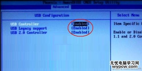進入“USB Configuration”后,將所有項都改成“Enabled”,按上下方向鍵選中后按回車由“Disabled”改為“Enabled”即可:
