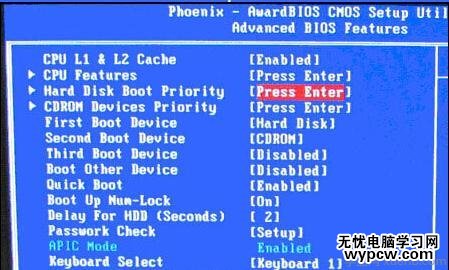 2、高級BIOS設(shè)置(Advanced BIOS Features)界面,首先選擇硬盤啟動優(yōu)先級:Hard Disk Boot Priority