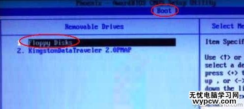 7、接下來(lái)按ESC返回上一級(jí)設(shè)置界面,按上下方向鍵,選擇第二行的“Removeable Drives”項(xiàng),并按回車(chē)進(jìn)入