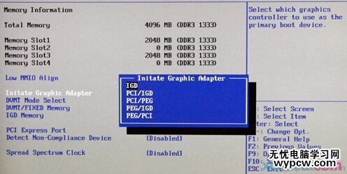 在這個項目下,可選顯卡項一般為插槽類型,如PCI,AGP,PCI-E等,或IGD,PED等字樣。