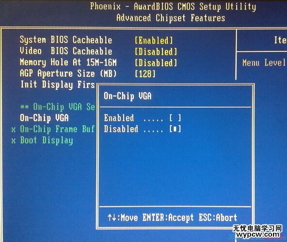 如有on-board graphic字樣則是禁用啟用內置顯卡項。