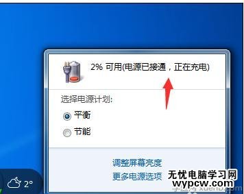 然后再打開筆記本電腦的電源,會發現電源顯示電池正在充電