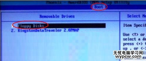 接下來按ESC取消鍵,返回上一級設置界面,按上下方向鍵,選擇第二行的“Removeable Drives”項,并按回車進入: