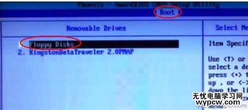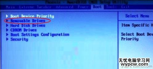 接下來按ESC取消鍵,返回上一級設置界面,按上下方向鍵,選擇第二行的“Removeable Drives”項,并按回車進入: