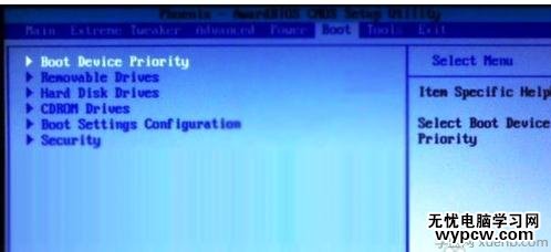 設置好后按鍵盤上的ESC鍵退回到上一級設置界面。再按左右方向鍵,選擇“BOOT”主菜單,選擇第一項“Boot Devicepriority”按回車進入: