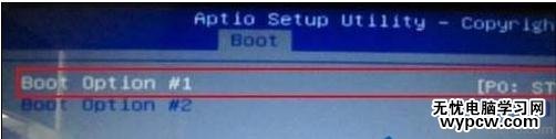 2.按左右方向鍵←→移動(dòng)光標(biāo)并選擇到“BOOT”設(shè)置選項(xiàng)處。boot為開機(jī)啟動(dòng)引導(dǎo)選項(xiàng)設(shè)置的地方,如下圖所示:
