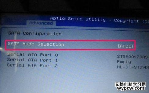 4,其界面如下圖顯示,在SATA Mode Selection這一項(xiàng),按Enter進(jìn)入,對(duì)AHCI與IDE進(jìn)行選擇,如果用PE裝系統(tǒng),沒(méi)有發(fā)現(xiàn)硬盤(pán),就要選擇IDE這一項(xiàng)。