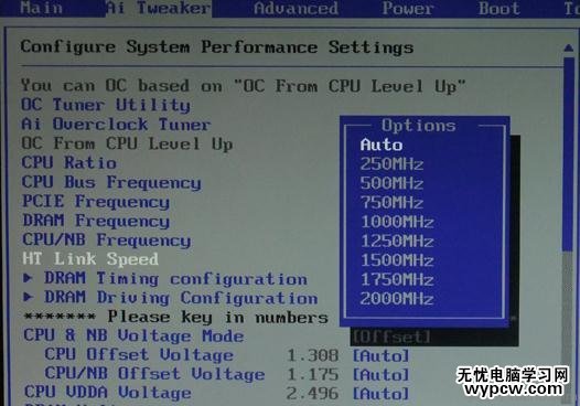 這項也是主板與CPU進行溝通的橋梁,HT前端總線,通常CPU默認頁為2000MHz,我們就設置為2000MHz最為優。