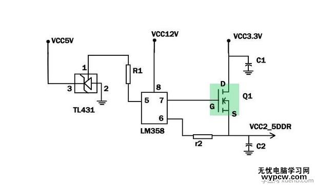 2、若場(chǎng)效應(yīng)管未被擊穿,測(cè)場(chǎng)效應(yīng)管的S極有無電壓輸出,若無,檢測(cè)場(chǎng)效應(yīng)管的D極有無3.3V或5V電壓輸入,若有,檢測(cè)場(chǎng)效應(yīng)管的柵極有無3-5V控制電壓,若有,則場(chǎng)效應(yīng)管壞,若無,檢測(cè)LM358的12V供電是否正常,若正常則檢查電源插座到LM358芯片的正相輸入端(第五腳)之間的元器件故障(如分壓電阻、WL431等),若輸入端正常,則LM358損壞。