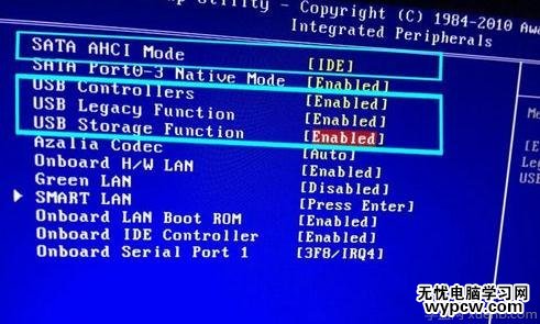 ③ "USB Legacy Function"設(shè)置為“Enabled”