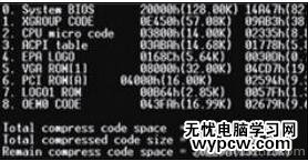 用cbrom查看備份bios剩余空間。運行命令C:/>cbrom 777.bin /d 看到下圖,圖上最后一行就是剩余空間的大小。由于使用CBROM加入圖像時,自動對圖像進行壓縮,因此300KB左右的圖像只需要17~20KB的剩余空間即可。