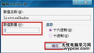 如下圖雙擊“PstviewShadow”鍵,彈出鍵值對話框,將數值數據”0“改為“1”,確定。