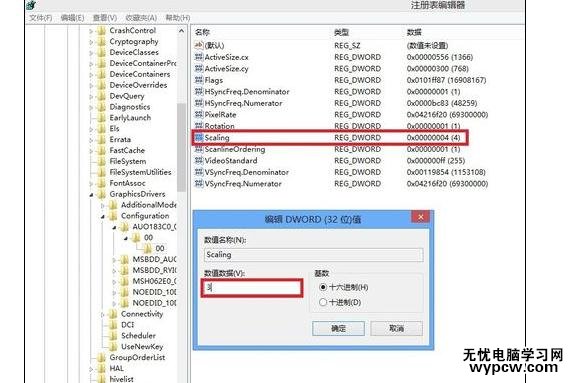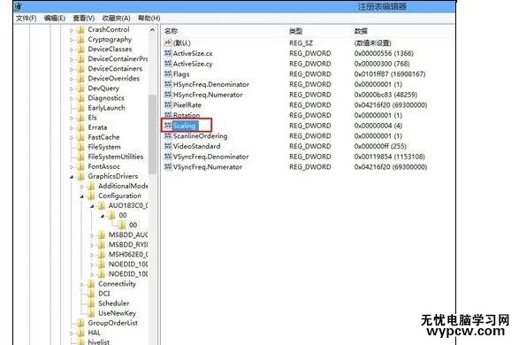 定位到HKEY_LOCAL_MACHINE---SYSTEM---ControlSet001---Control---GraphicsDrivers---Configuration,在Configuration里右鍵點擊查找,輸入scaling,點擊scaling右鍵修改,將數值改為3即可,原值為4.