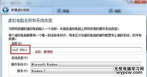 3、輸入虛擬系統的名稱,選擇操作系統的版本,這里向大家演示的是選擇32位的win8系統。