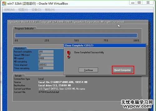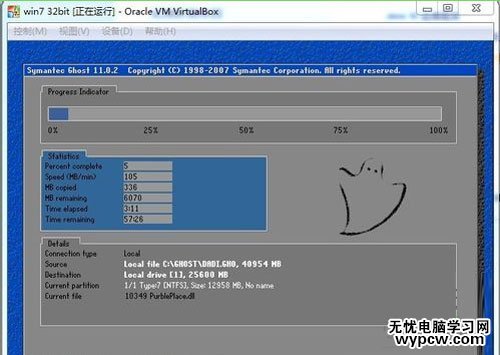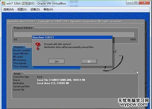19、選擇OK,馬上進入系統恢復安裝過程。