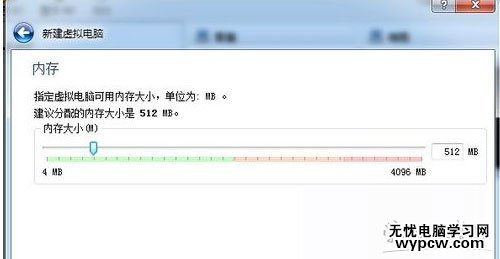 4、配置虛擬系統的內存,使用默認的512MB,可根據自己的需求調節大小,最好不要超過自己物理機的一半內存量。