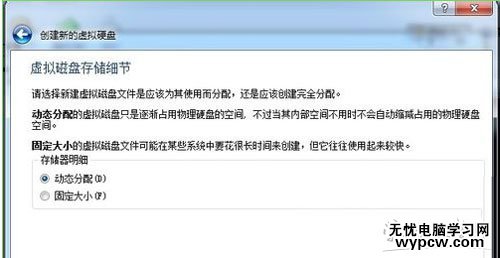 7、分配虛擬磁盤的大小。默認使用動態分配即可。它會根據系統的大小自動增加虛擬磁盤容量。