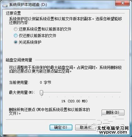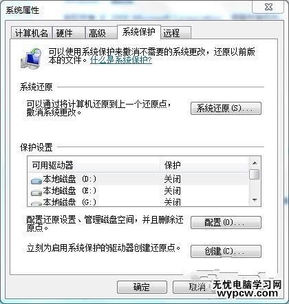 4、將還原設(shè)置選擇到“關(guān)閉系統(tǒng)保護(hù)”