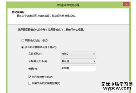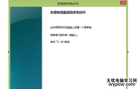 7、選擇新分區(qū)單擊右鍵后選擇新建單元卷,就會出現(xiàn)下圖界面。然后一直點擊下一步直到出現(xiàn)完成的按鈕,點擊完成。