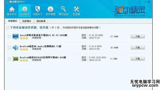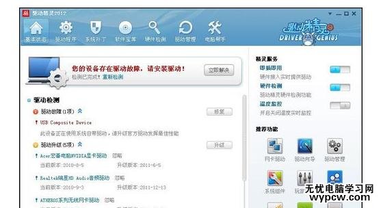 點擊立即檢查,等待一會,會出現以下界面,提示你有哪些驅動出現故障,哪些需要升級