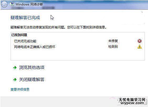 這時(shí)候就會(huì)彈出向?qū)ВM(jìn)行自動(dòng)診斷。有的情況它會(huì)自動(dòng)進(jìn)行修復(fù),部分的問題利用Windows診斷就可以解決。