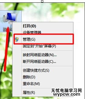 選擇我的電腦并點擊右鍵,選擇管理菜單,進入下圖2界面。