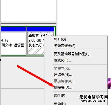 今天我們以將新加卷H盤合并到G盤為例:選擇G盤并單擊右鍵呼出菜單,在菜單中選擇刪除卷菜單。出現下圖2界面
