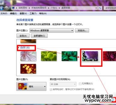 選擇最下面的“桌面背景”打開,在背景框里選擇自己喜歡的場景。