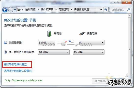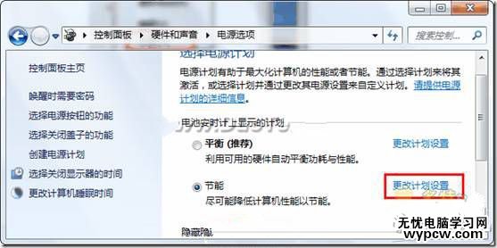 控制面板→硬件和聲音→電源選項,再單擊“改變計劃設置”