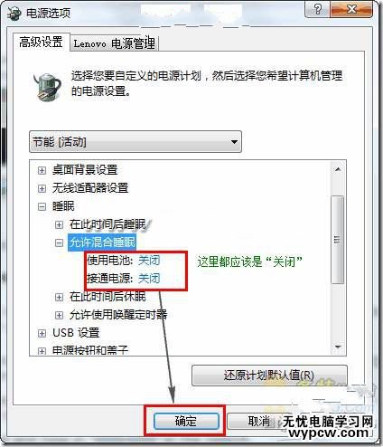 檢查“混合睡眠”是不是被打開了。如果打開,就關閉它