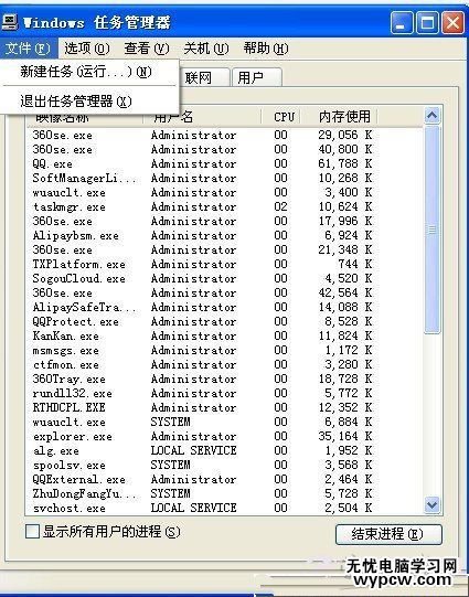 3、繼續(xù)按下 ctrl + alt + delete 打開任務(wù)管理器,選擇“文件”然后選擇“新建任務(wù)”,如下圖: