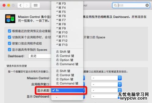 如果覺得Fn+F11離得太遠,可進入“系統偏好設置”-“mission control”-“顯示桌面”,修改為“Fn”,會更加方便操作。