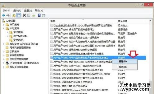 依次找到:本地安全策略 → 本地策略 →安全選項,在右側的視圖里找到 用戶帳戶控制:用于內置管理員帳戶的管理員批準模式。→屬性(或者雙擊打開該策略)