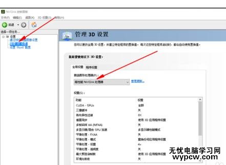 點擊 管理3D設置-----選擇高性能AVIDIA處理器-----應用