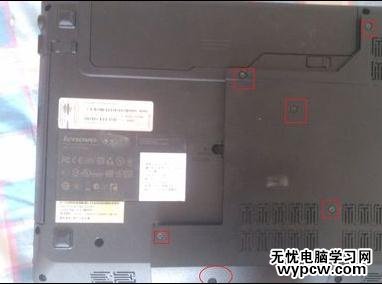 首先我的筆記本是聯想g470,打開后蓋一共需要擰六個螺絲如圖。